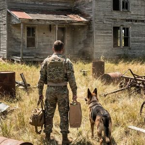 A bloodied military dog burst into the ER carrying an unconscious child, refusing to leave her side.